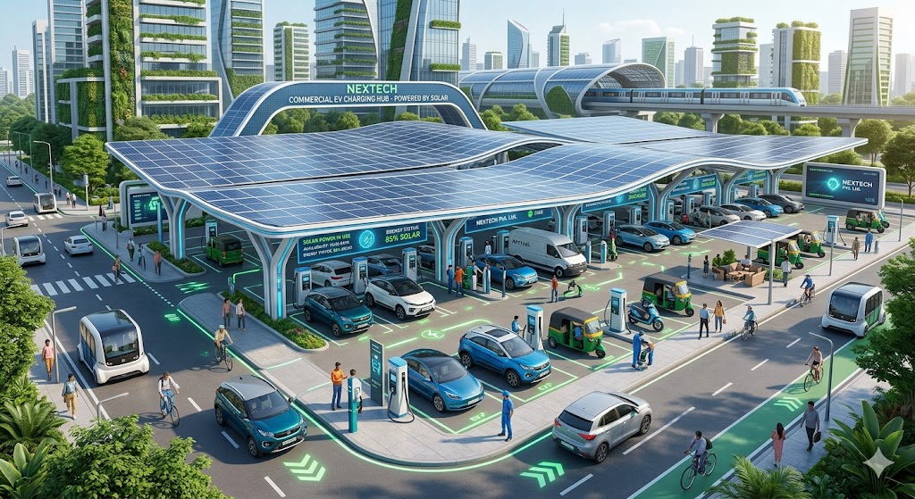 NexEcoTech Pvt. Ltd. introduces Solar EV Charging Points, a smart and sustainable solution designed to power electric vehicles using clean solar energy. With the rapid growth of electric mobility in India, integrating solar energy with EV charging is the future of transportation.